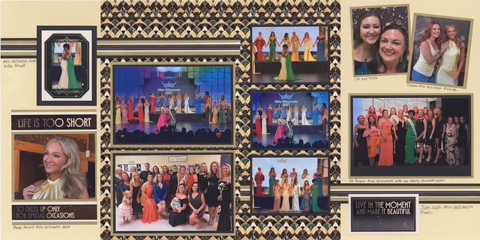 To recreate the two-page spread below, gather the following papers from the Black Tie collection: