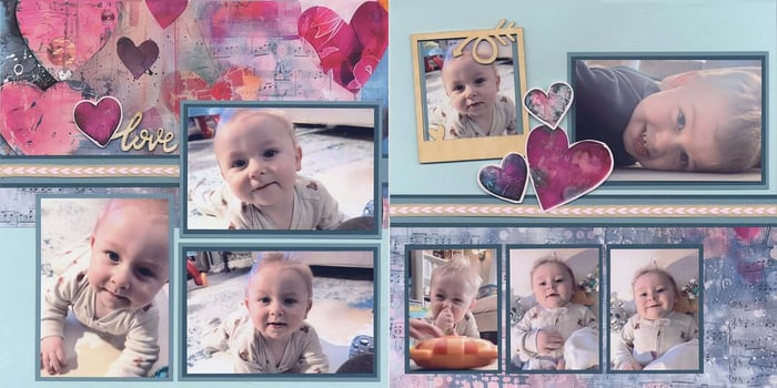 Create a beautiful two-page spread when you pair five coordinating sheets of paper with the February page formula. The trimming and assembly process takes only minutes, and the same instructions can be used again and again with supplies you already have on hand.