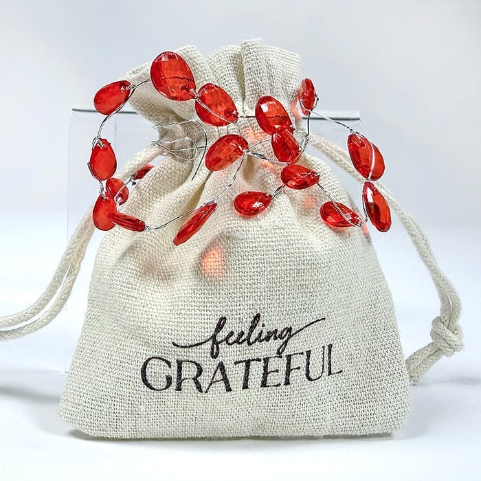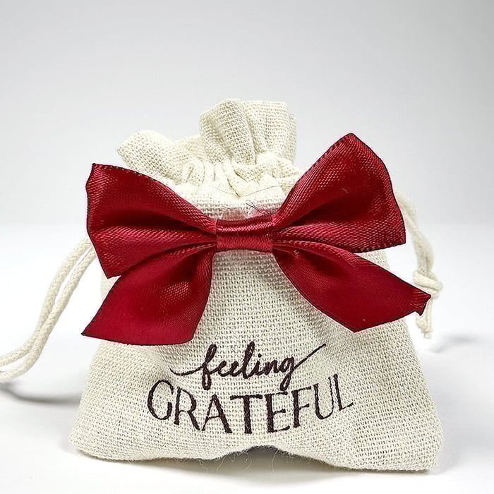 Package of two natural linen drawstring bags. Includes one of each custom-printed sentiment: "so very blessed" and "feeling grateful". Each bag measures approximately 3.25x4".Fill with treats for your Thanksgiving celebration, or deconstruct the bag for even more versatility on pages… Read More