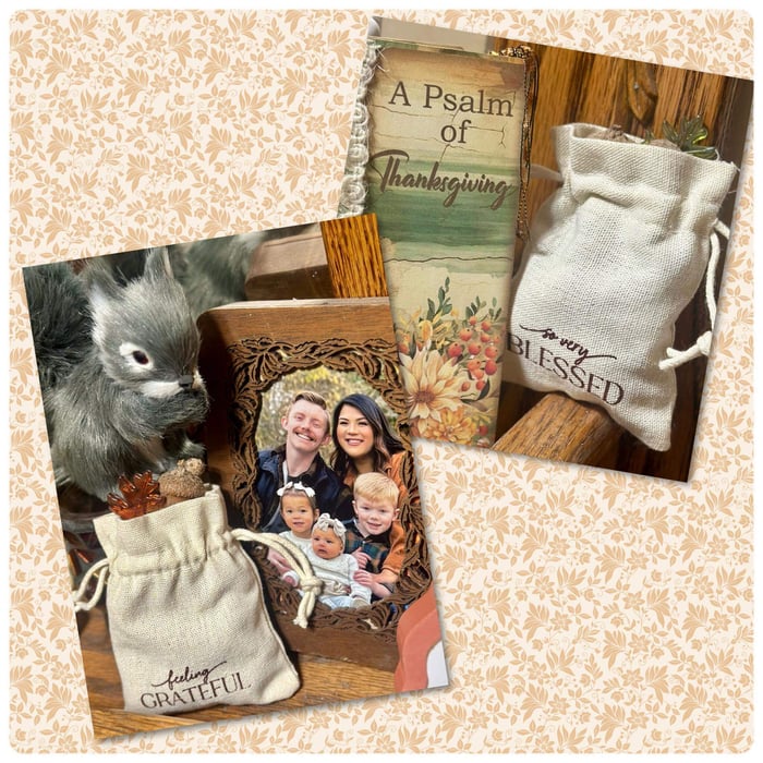 One of our chat group members recently shared how she decorated for Thanksgiving with Autumn Glow Drawstring Bags. Her simple yet inspiring idea sparked a few more, so I'm sharing them with you today!