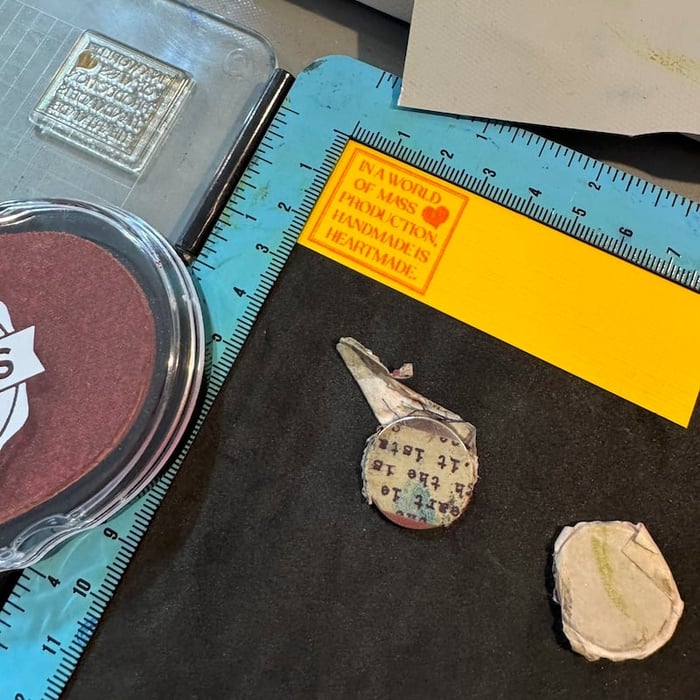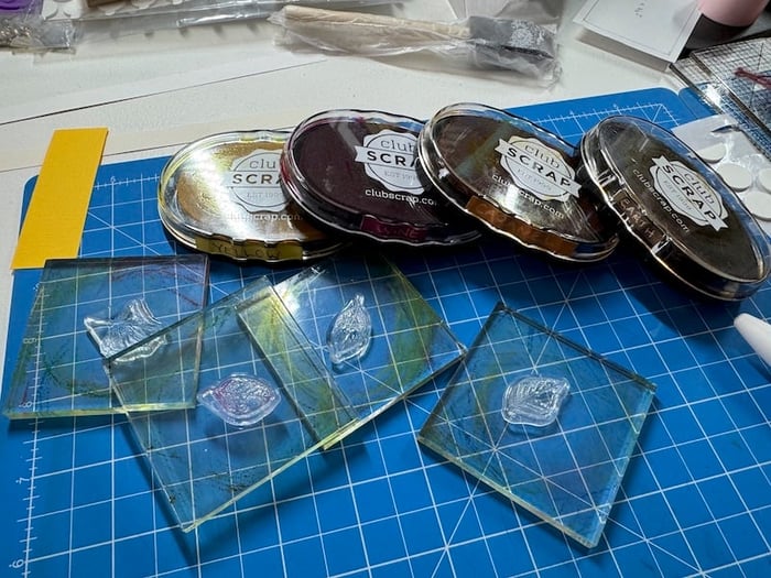 Place the panel in a Spray Tray (learn to make one here). Press the open ink pad face down on a non-stick surface. This will dispense a small amount of ink. Pick up the colors with a waterbrush and tap lightly over the artwork. This will result in a speckling effect.