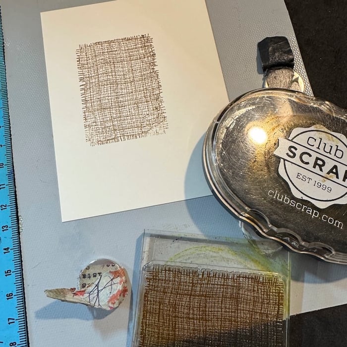 Stamp the burlap image on an Ivory panel in Earth Ink.