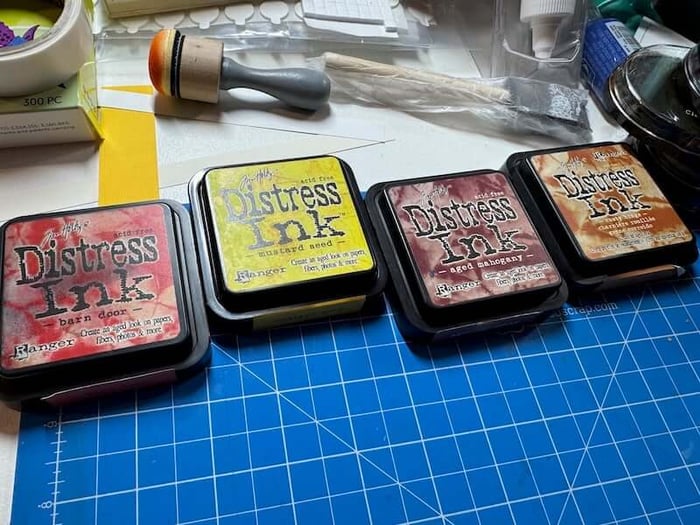 Distress Inks are reactive with water. Activate the ink with a waterbrush to fill the image with color.