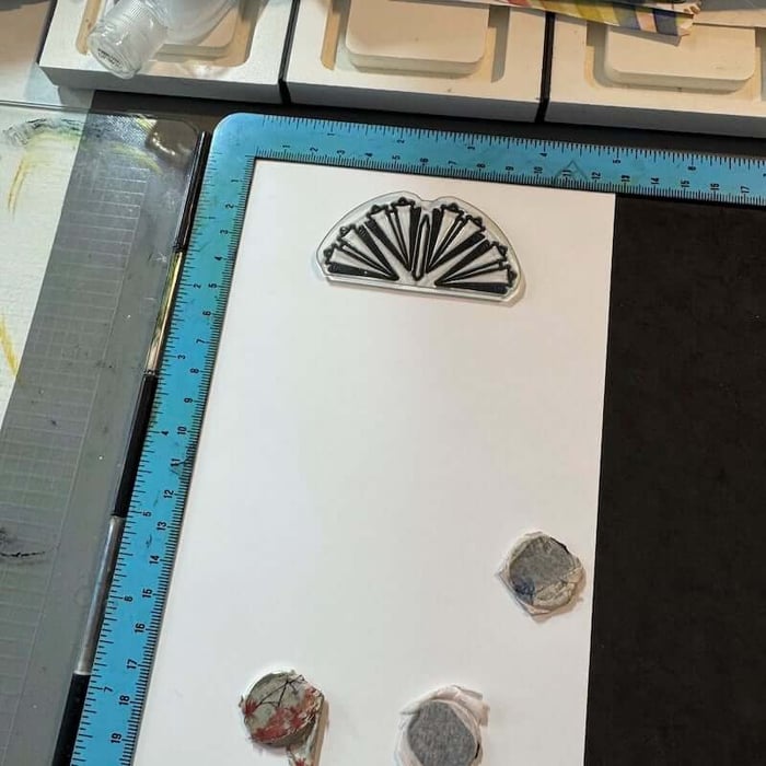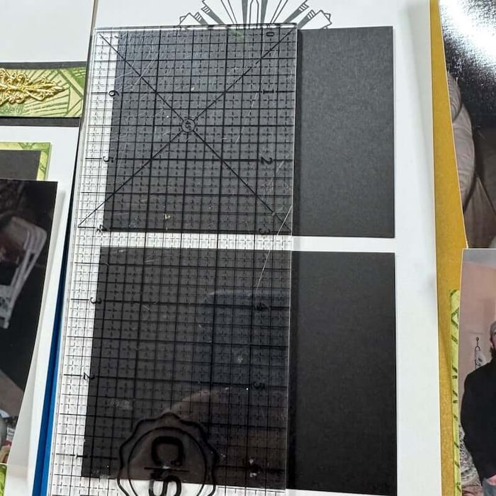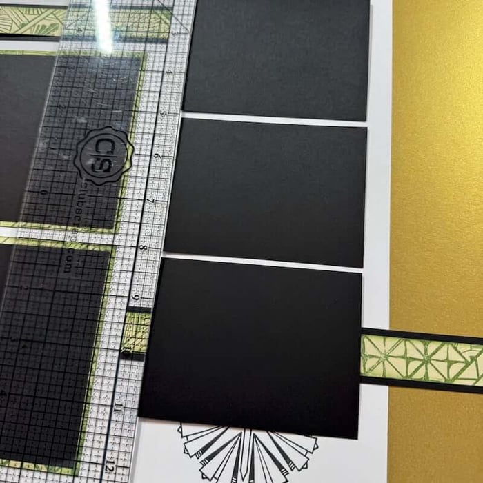 Adhere the small Black panels, utilizing the ruler to ensure perfect alignment and even spacing.