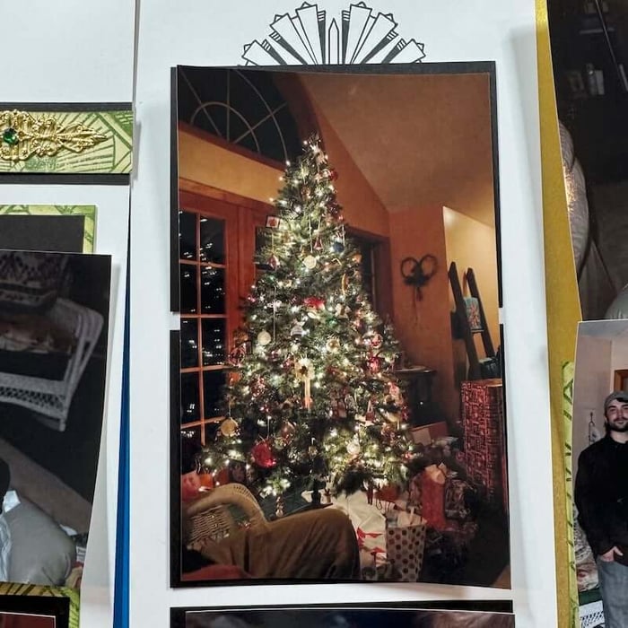 The vertical tree photo was cropped to span the space created by two Black mats. Crop the remaining photos and adhere them to their corresponding mats.