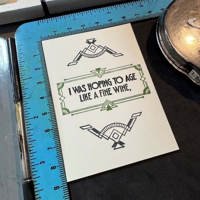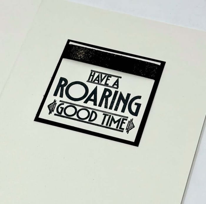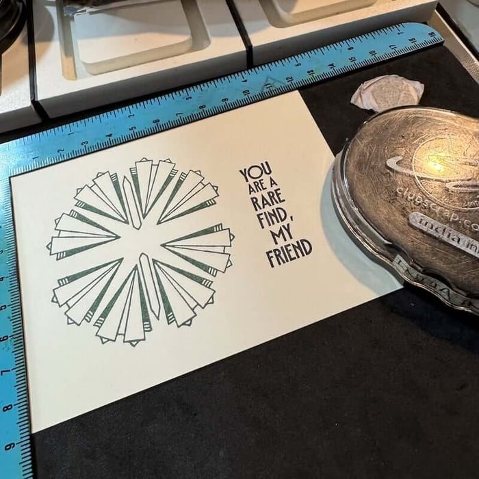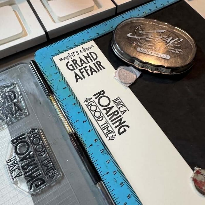 Stamp the sentiment onto an Ivory panel with Spruce Ink.