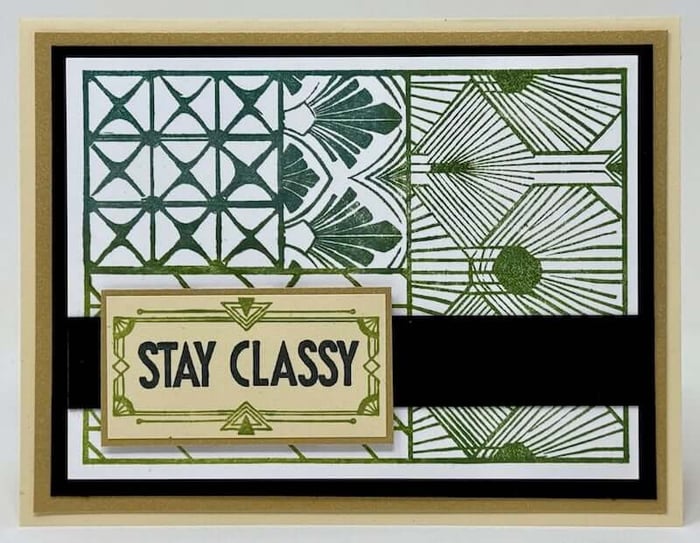 Create seven gorgeous cards with February's Black Tie Stamps. Pair the modern art deco images with the classic hues of the papers from the collection.