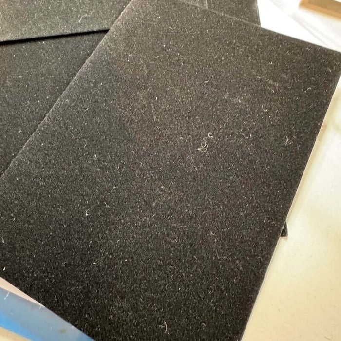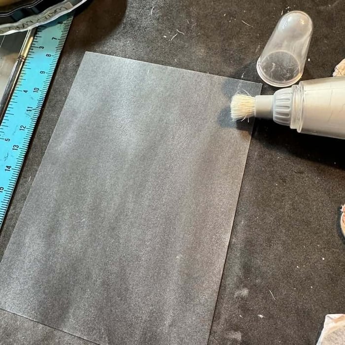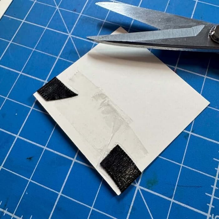 Add Bookbinding Glue to the back side of a Velvet panel and insert the tip of each corner into the slots.