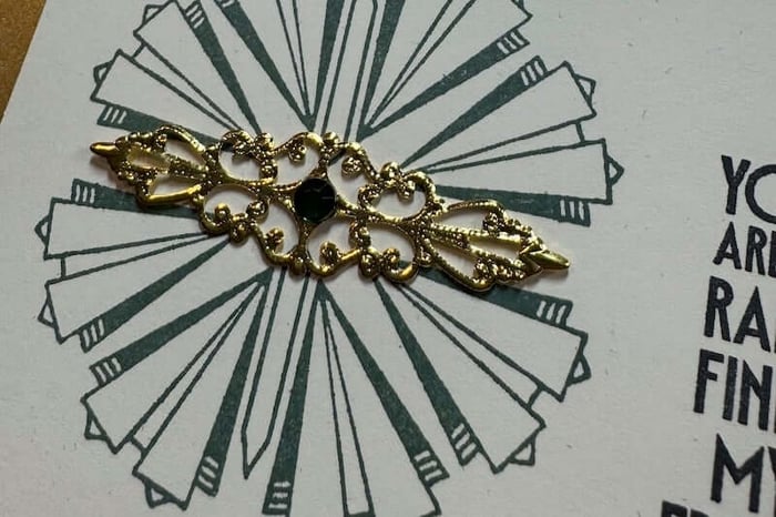 Apply Bookbinding Glue dispensed from a Needle-tipped Applicator to the back of a Filigree Accent.
