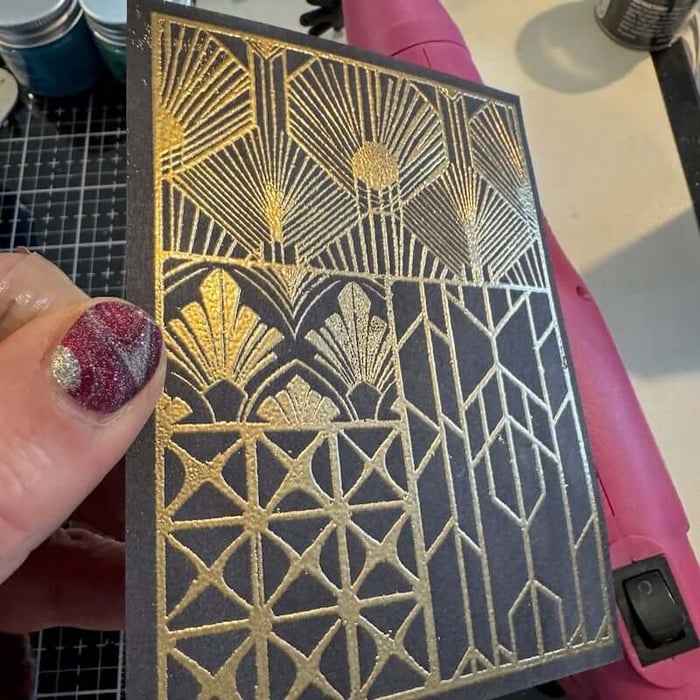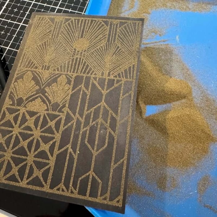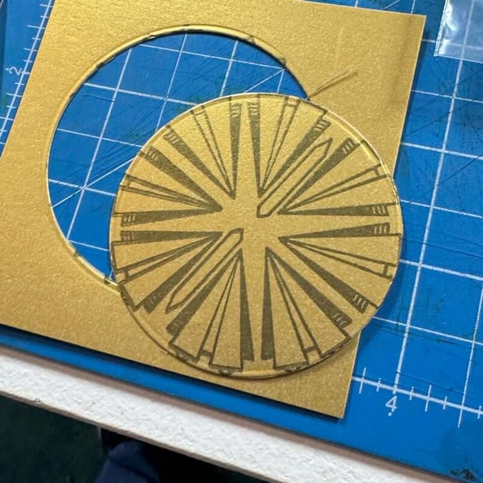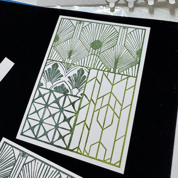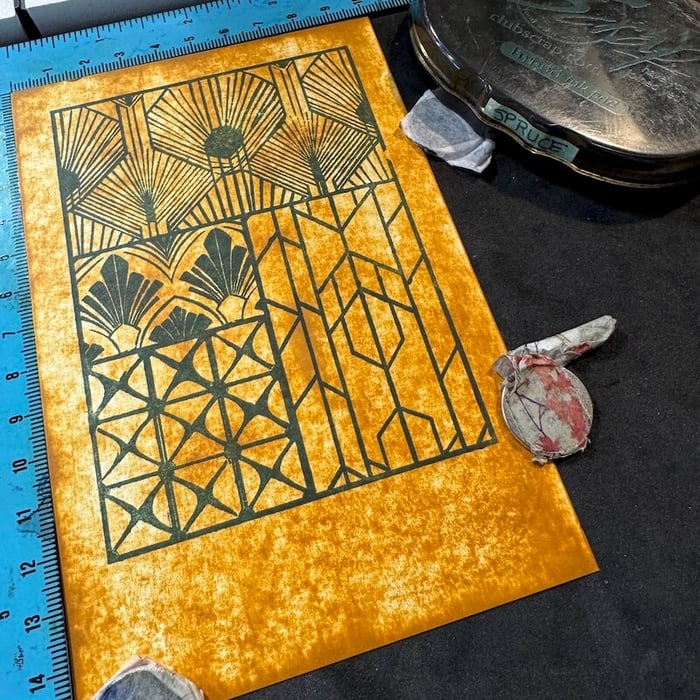 Trim the panel leaving an 1/8" reveal around the stamped image.