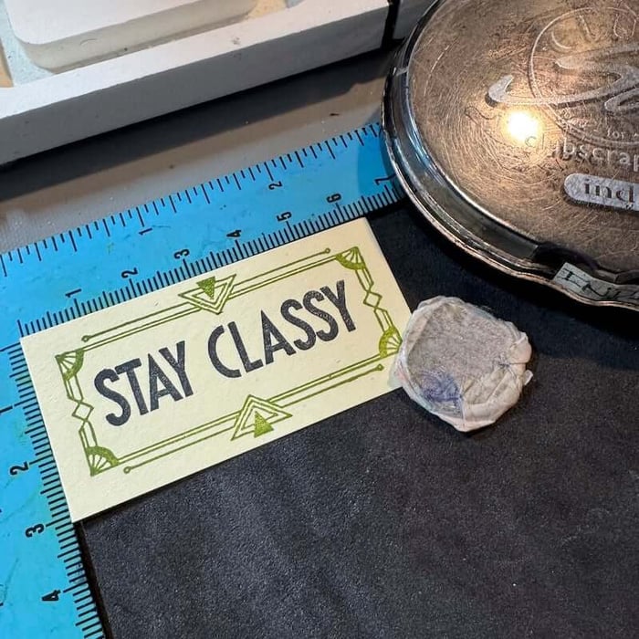 Stamp the sentiment onto the 2" circle with Moss Ink.