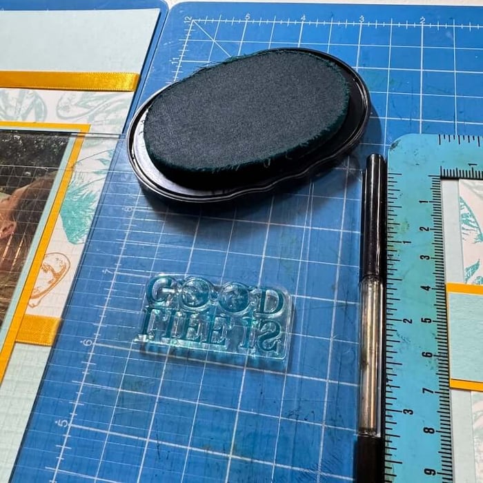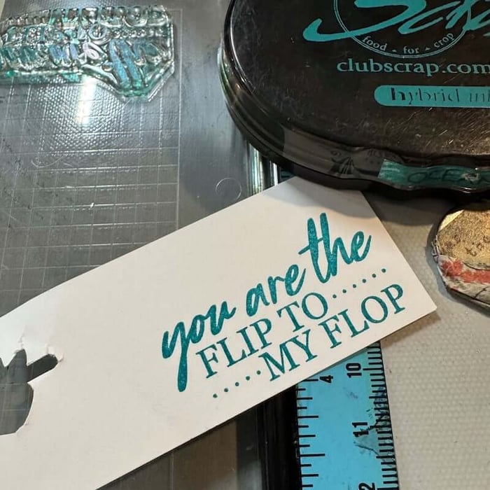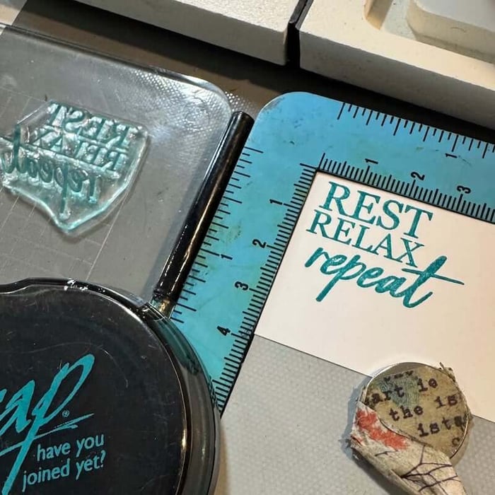 Stamp another sentiment onto a second scrap of White paper with Ocean Ink.