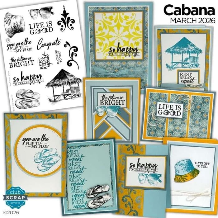 Get ready for warmer days with Cabana. This month's theme features a cool, peaceful color palette of sky-inspired blues with a touch of sunny gold. If you love classic patterns paired with beachy motifs, the March theme is the creative muse you've been waiting for!