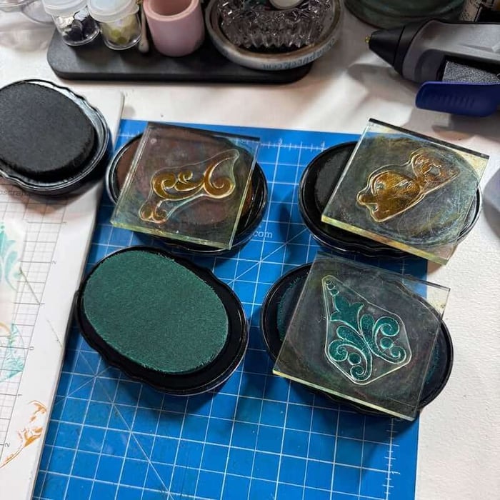 Add a variety of images from the Cabana Stamps to acrylic mounting blocks. Designate a single ink color for each image.