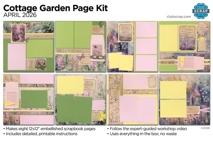 If you long for spring or are looking forward to the lazy days of summer, the Cottage Garden Page Kit is the perfect backdrop for your memories. Featuring dreamy florals and a touch of whimsy, this collection is perfect for preserving all of your spring memories: Easter, Mother's Day or just those simple everyday moments. Follow along as I guide you through creating eight beautifully balanced 12×12 layouts that feel effortless.
