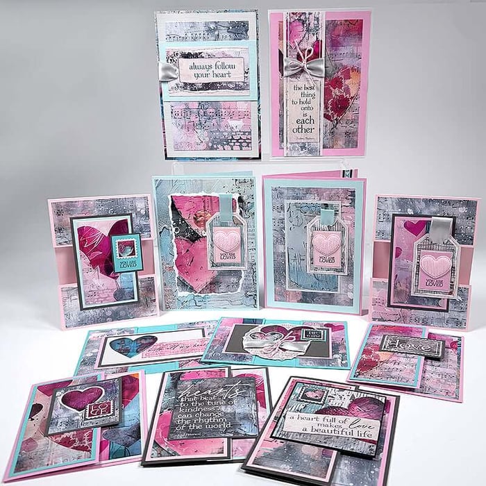 Transform any special release page kit into cards with one of Club Scrap's many card making formulas. In this case, Tricia recycled the cutting and assembly instructions from the Autumn Glow card kit to make a dozen Heartfelt cards.