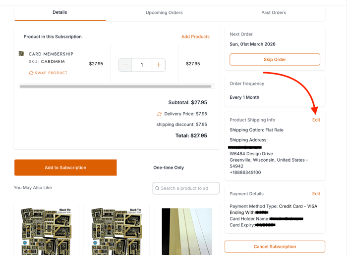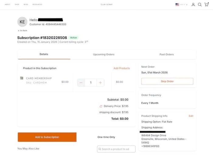 Verify the address of your next monthly shipment.