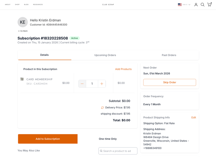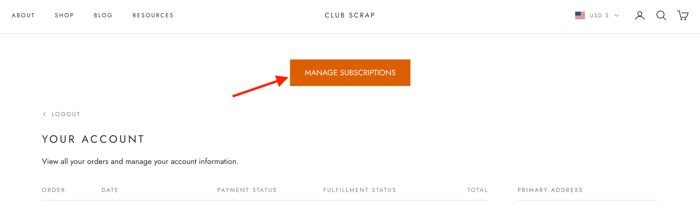 Once logged in, you should see a screen with your order history and MANAGE SUBSCRIPTIONS.