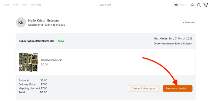 If you have any inactive subscriptions (subscriptions that had to be previously cancelled for any reason) you might begin on a page that shows your current active subscription at the top of the page and all other inactive subscriptions listed below it. Click "See More Details" to move to the current active subscription page.