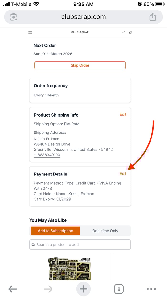 There are a number of reasons you'd need to update the payment information for your Club Scrap membership. The most common is an expired credit card. It is easy to update the information in just a few simple steps.