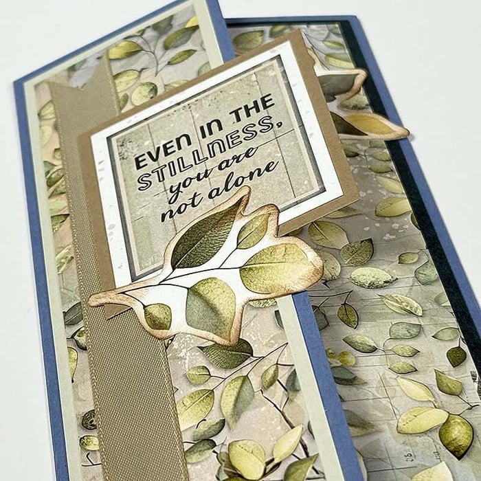 I'm also featuring an elegantly simple vertical slimline card style. The left and right flaps overlap and reveal a stunning 3x8" sentiment inside!