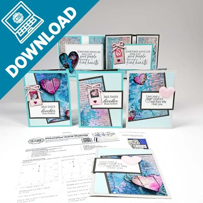 To get started, purchase and download the Precision Card Making Online Class. Next, gather the items listed in the Materials and Supplies list on the document—I used the five sheets of paper left over from the Heartfelt kit plus one White Plain.