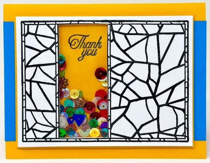 Center and adhere the shaker panels over the Blue paper to complete the card.