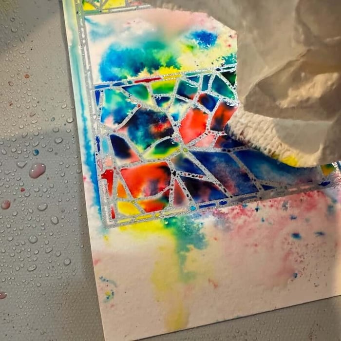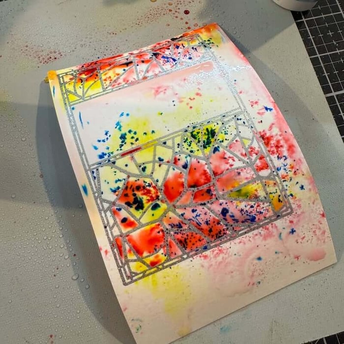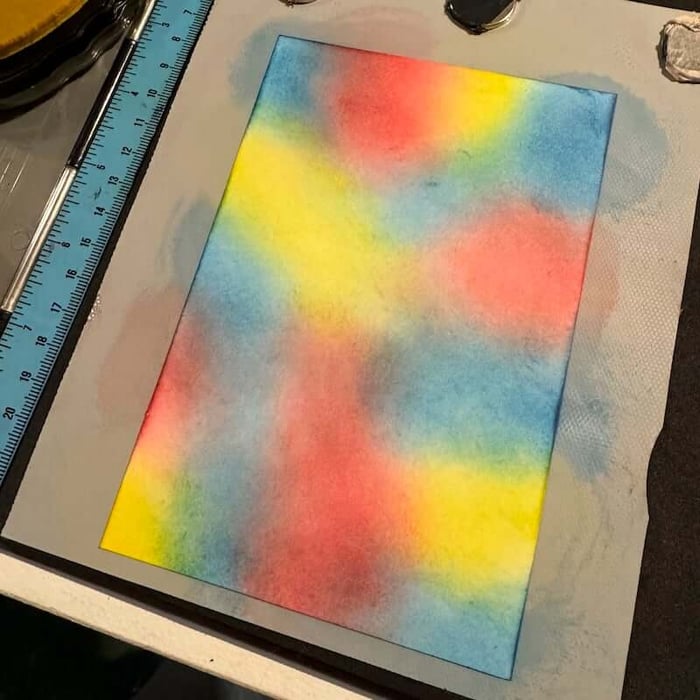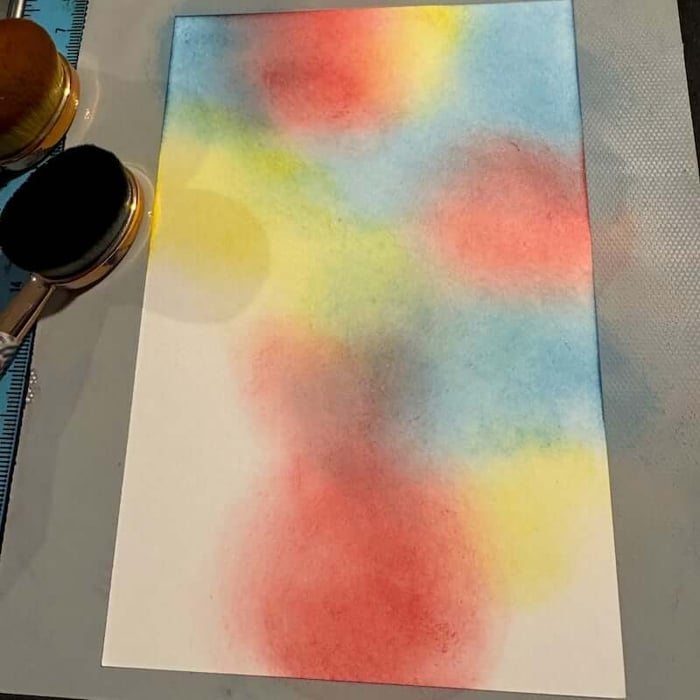 Sprinkle Color Burst powders over the wet paper until the desired coverage is achieved. Add more water and powder as needed.