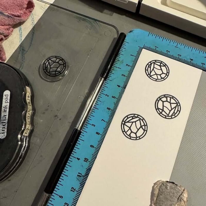 Stamp a sentiment in the top right portion of the circle with India Ink.