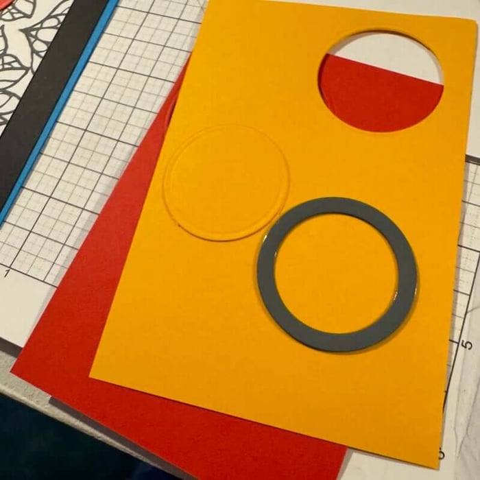 Dry the panel completely. Crop the image with scissors or a paper trimmer. Nest the panel onto a Yellow mat.