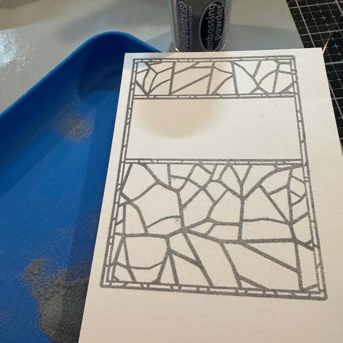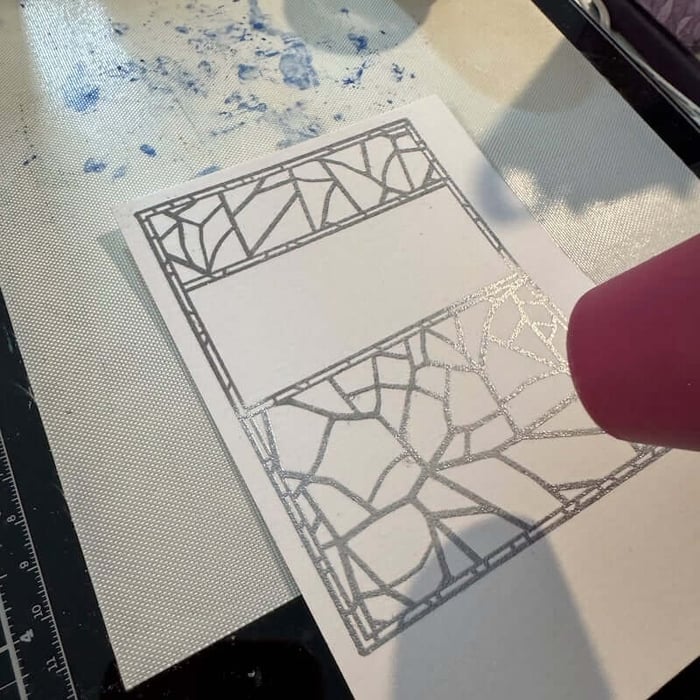 Sprinkle silver embossing powder over the image and tap the edges to remove any excess powder.
