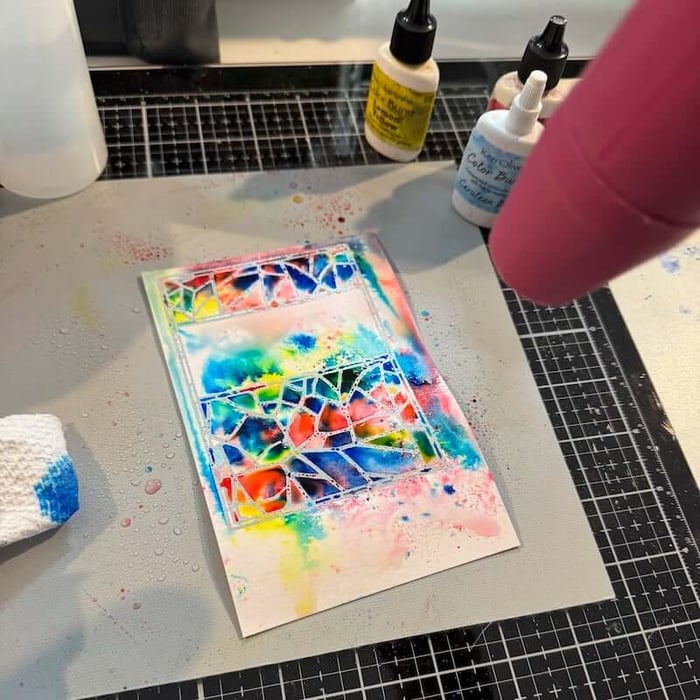Heat set the image to speed the drying time. NOTE: Keep the tool away from the paper to avoid remelting the embossed areas. Allow the panel to dry completely before moving on to the next step.