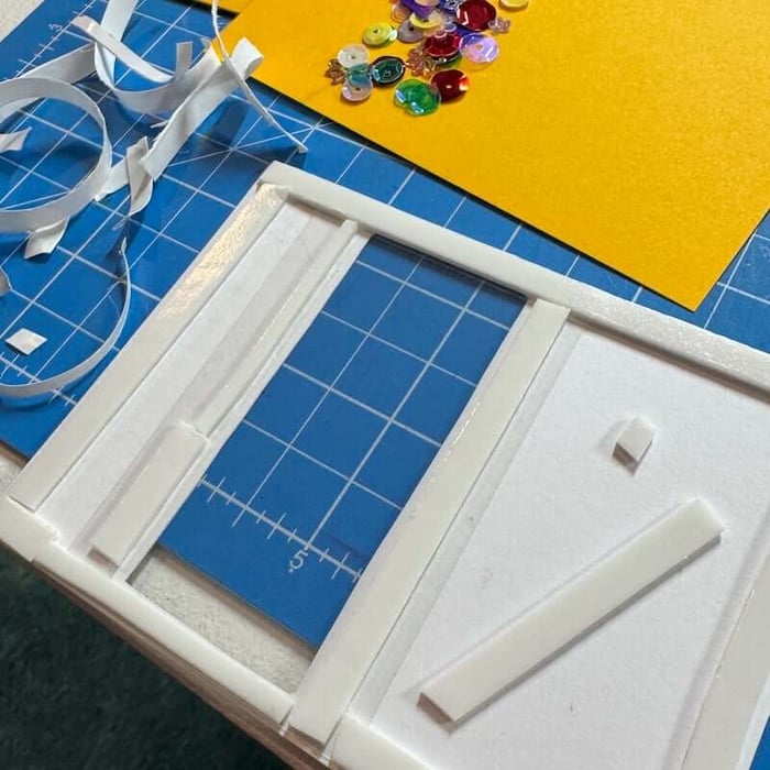 Add strips of foam adhesive around the window and on the back of the panel as shown.