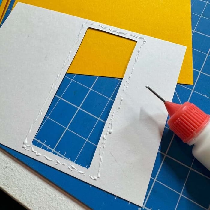 Flip the panel overk and run a small bead of glue around the opening with Bookbinding Glue dispensed from a Needle-tipped Applicator.